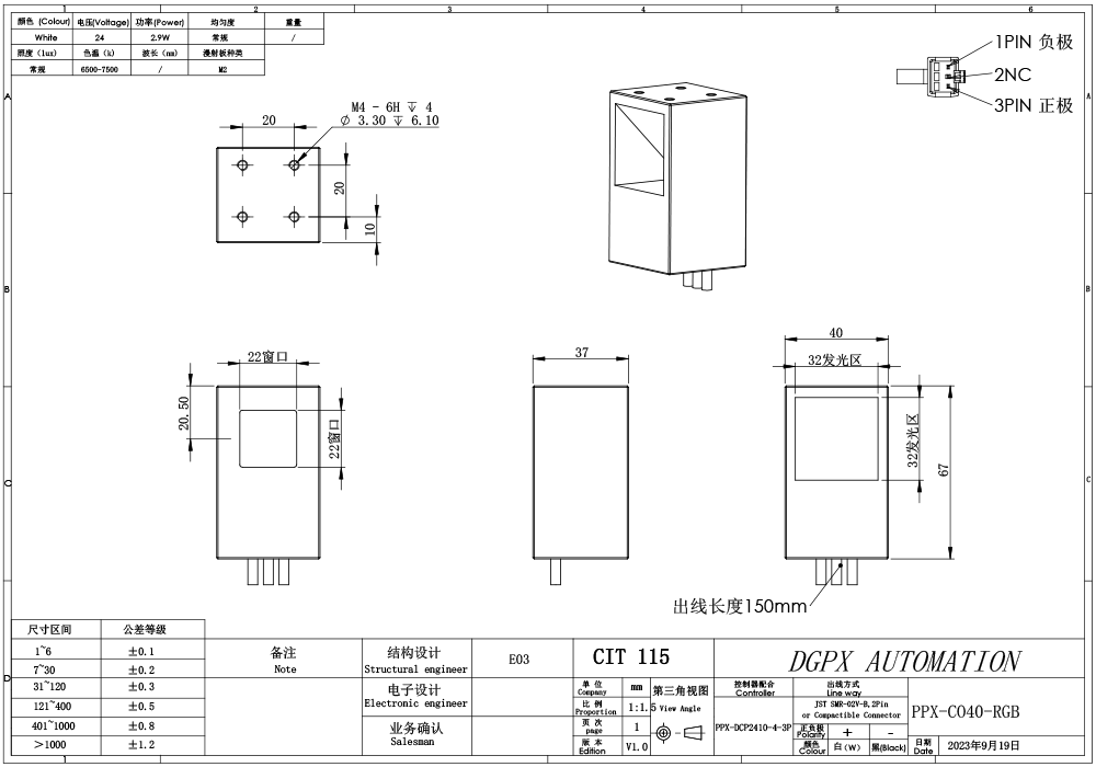 PPX 磐鑫 PPX-CO40 同轴光源 01. 技术指标 02. 选型说明 03. 特殊定制项目 04. 光谱分布 手机/微信:18320955412 电话:86 0755 84689265 QQ:2423332841 邮箱:2423332841@qq.com
