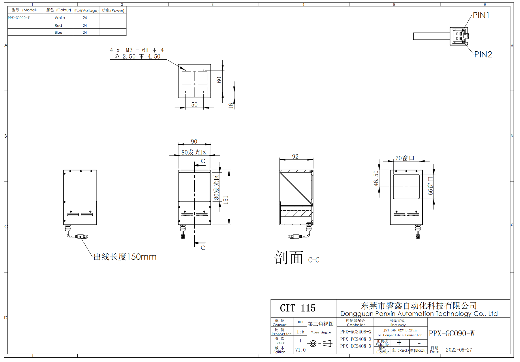PPX 磐鑫 PPX-GCO90-W 高亮同轴光源 01. 技术指标 02. 选型说明 03. 特殊定制项目 04. 光谱分布 手机/微信:18320955412 电话:86 0755 84689265 QQ:2423332841 邮箱:2423332841@qq.com