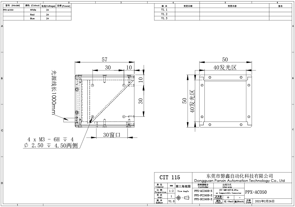 PPX 磐鑫 PPX-ACO50S 转角同轴光源 01. 技术指标 02. 选型说明 03. 特殊定制项目 04. 光谱分布 手机/微信:18320955412 电话:86 0755 84689265 QQ:2423332841 邮箱:2423332841@qq.com
