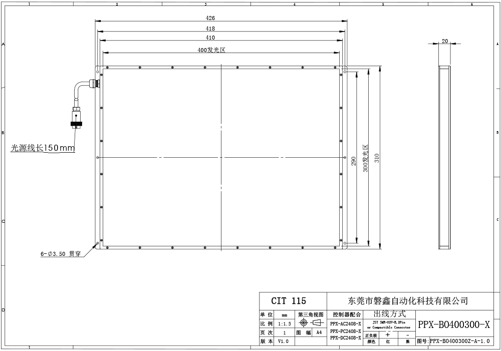 PPX 磐鑫 PPX-BO400300 底部背光源