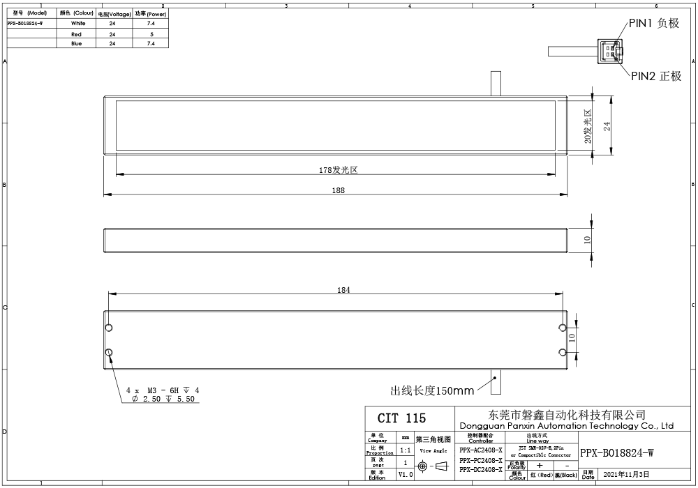 PPX 磐鑫 PPX-BO18824 底部背光源 01. 技术指标 02. 选型说明 03. 特殊定制项目 04. 光谱分布 手机/微信:18320955412 电话:86 0755 84689265 QQ:2423332841 邮箱:2423332841@qq.com