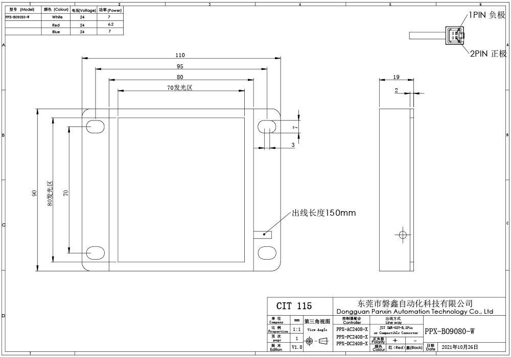 PPX 磐鑫 PPX-BO9080 底部背光源 01. 技术指标 02. 选型说明 03. 特殊定制项目 04. 光谱分布 手机/微信:18320955412 电话:86 0755 84689265 QQ:2423332841 邮箱:2423332841@qq.com