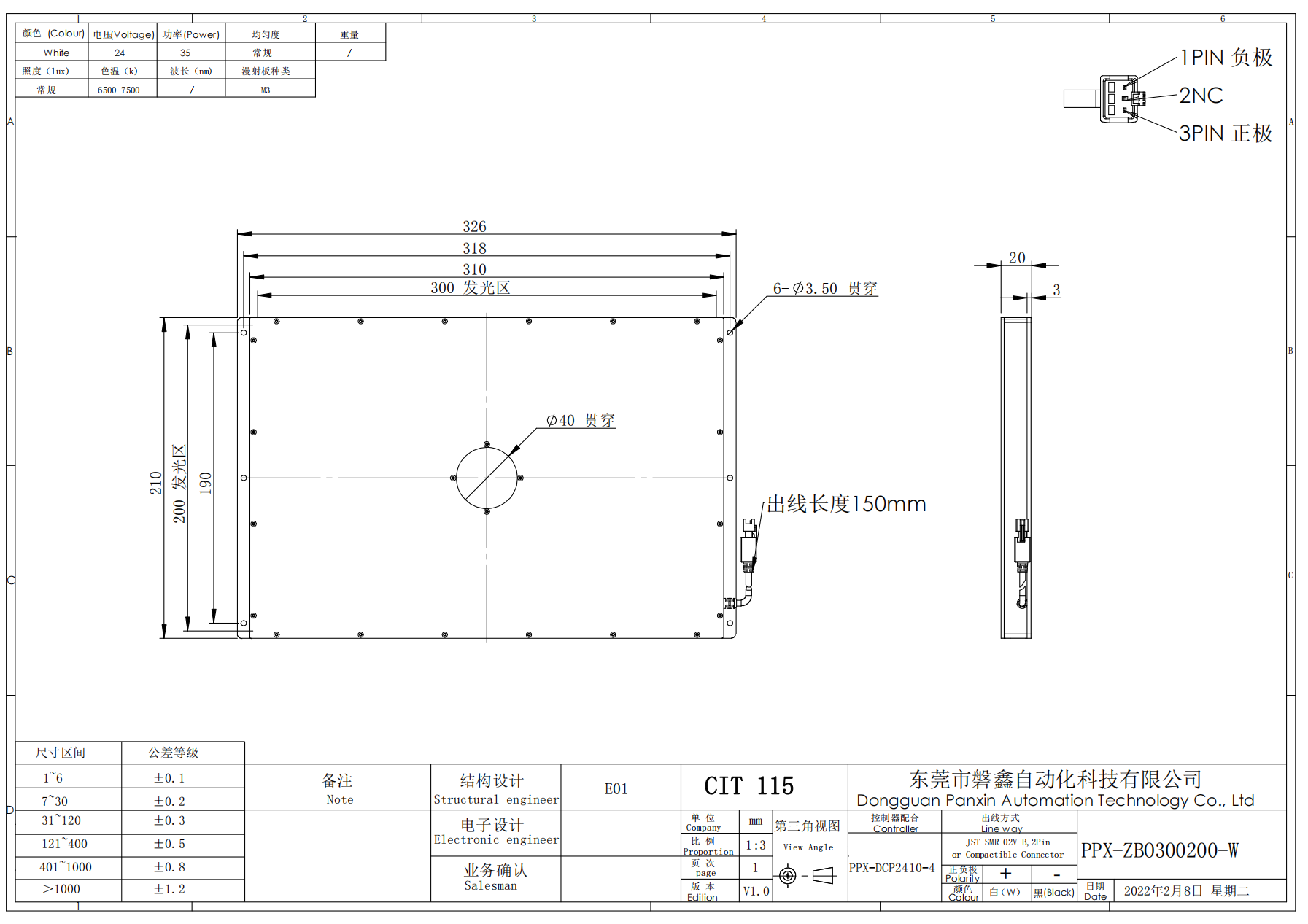PPX 磐鑫 PPX-ZBO280220-W 中孔背光源 01. 技术指标 02. 选型说明 03. 特殊定制项目 04. 光谱分布 以下皆为实验室数据仅供参考* 手机/微信:18320955412 电话:86 0755 84689265 QQ:2423332841 邮箱:2423332841@qq.com