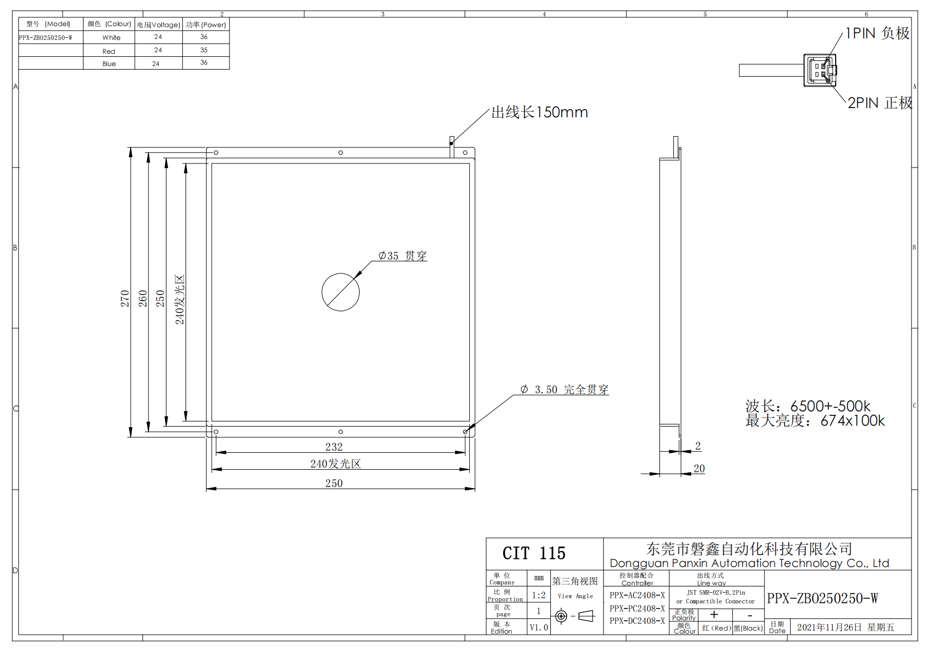 PPX 磐鑫 PPX-ZBO250250-W 中孔背光源 01. 技术指标 02. 选型说明 03. 特殊定制项目 04. 光谱分布 以下皆为实验室数据仅供参考* 手机/微信:18320955412 电话:86 0755 84689265 QQ:2423332841 邮箱:2423332841@qq.com