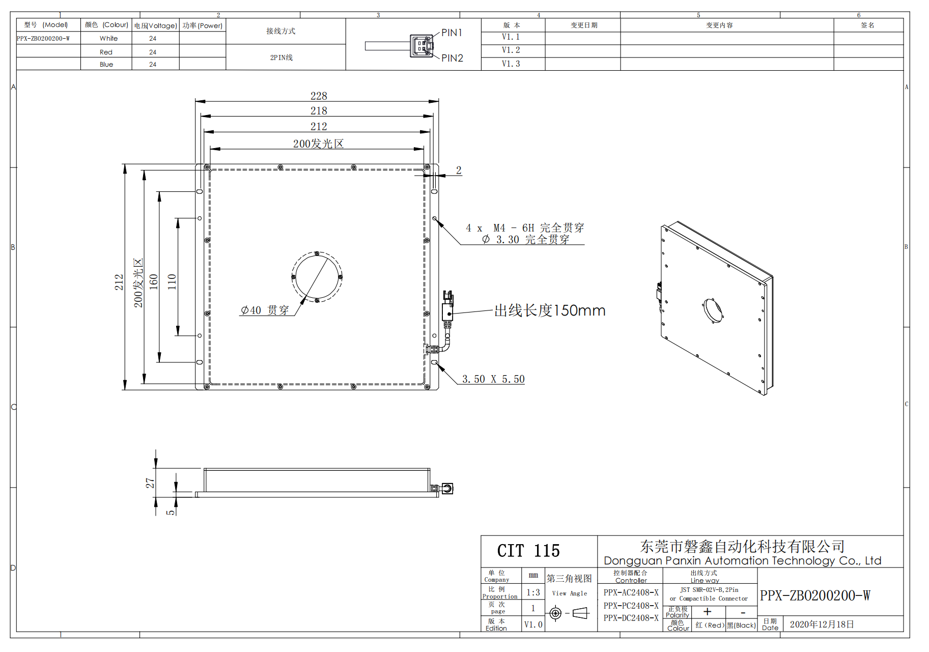 PPX 磐鑫 PPX-ZBO200200-W 中孔背光源 01. 技术指标 02. 选型说明 03. 特殊定制项目 04. 光谱分布 以下皆为实验室数据仅供参考* 手机/微信:18320955412 电话:86 0755 84689265 QQ:2423332841 邮箱:2423332841@qq.com