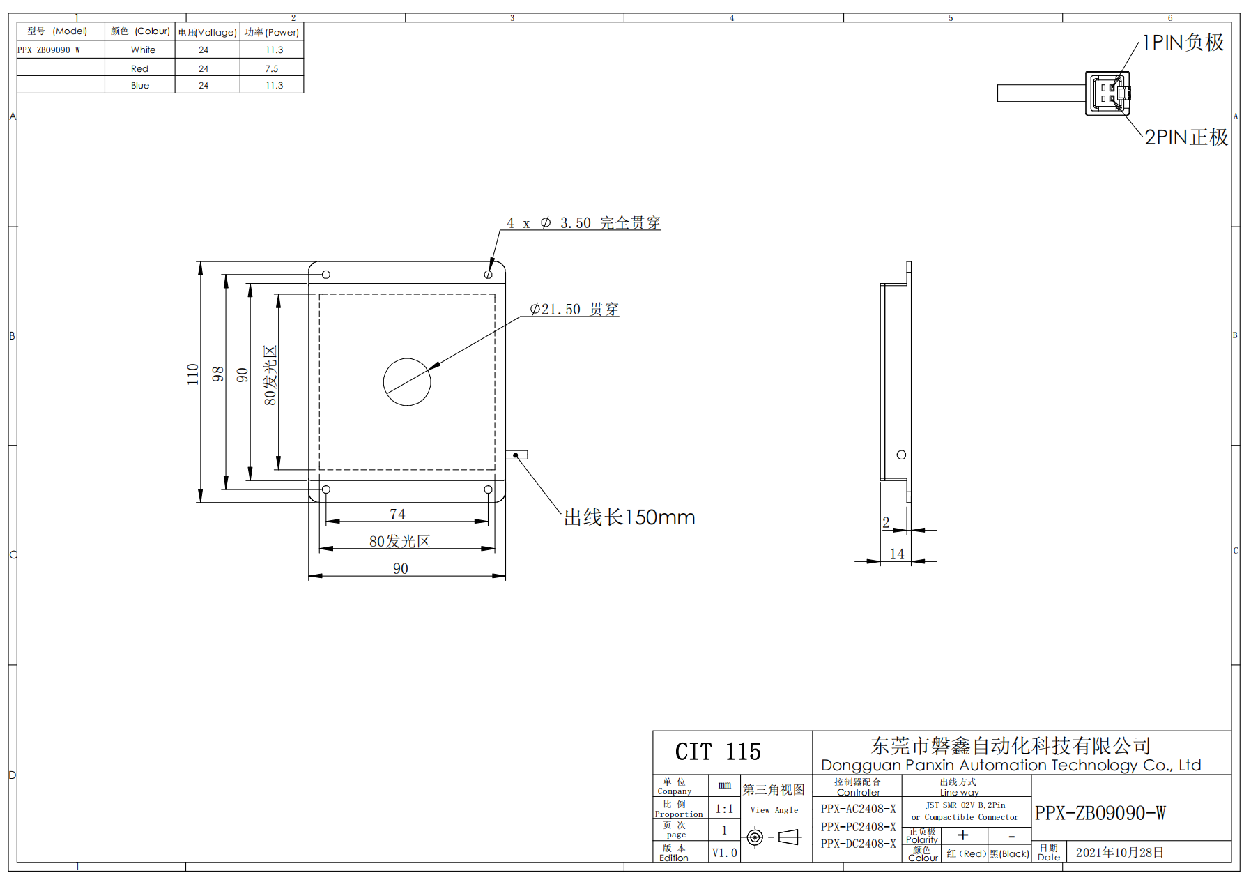 PPX 磐鑫 PPX-ZBO9090-W 中孔背光源 01. 技术指标 02. 选型说明 03. 特殊定制项目 04. 光谱分布 以下皆为实验室数据仅供参考* 手机/微信:18320955412 电话:86 0755 84689265 QQ:2423332841 邮箱:2423332841@qq.com
