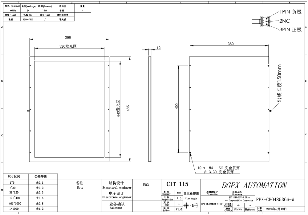PPX 磐鑫 PPX-CBO485366-W 侧部背光源 01. 技术指标 02. 选型说明 03. 特殊定制项目 04. 光谱分布 以下皆为实验室数据仅供参考* 手机/微信:18320955412 电话:86 0755 84689265 QQ:2423332841 邮箱:2423332841@qq.com