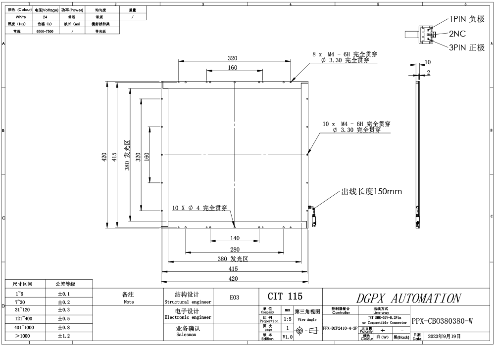 PPX 磐鑫 PPX-CBO380380-W 侧部背光源 01. 技术指标 02. 选型说明 03. 特殊定制项目 04. 光谱分布 以下皆为实验室数据仅供参考* 手机/微信:18320955412 电话:86 0755 84689265 QQ:2423332841 邮箱:2423332841@qq.com