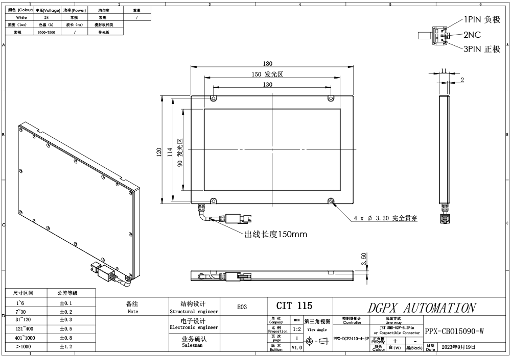 PPX 磐鑫 PPX-CBO15090-W 侧部背光源 01. 技术指标 02. 选型说明 03. 特殊定制项目 04. 光谱分布 以下皆为实验室数据仅供参考* 手机/微信:18320955412 电话:86 0755 84689265 QQ:2423332841 邮箱:2423332841@qq.com