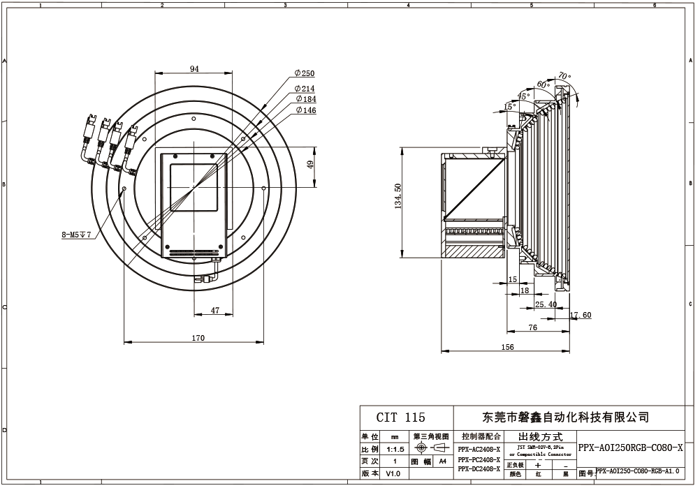 PPX 磐鑫 PPX-AOI250-RGB-CO80-A10 AOI光源 01. 技术指标 手机/微信:18320955412 电话:86 0755 84689265 QQ:2423332841 邮箱:2423332841@qq.com