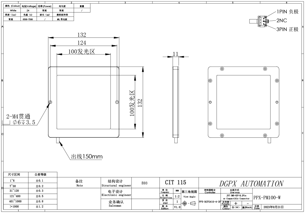 PPX 磐鑫 PPX-PM100-W 平面无影光源 01. 技术指标 02. 选型说明 03. 特殊定制项目 04. 光谱分布 以下皆为实验室数据仅供参考* 手机/微信:18320955412 电话:86 0755 84689265 QQ:2423332841 邮箱:2423332841@qq.com