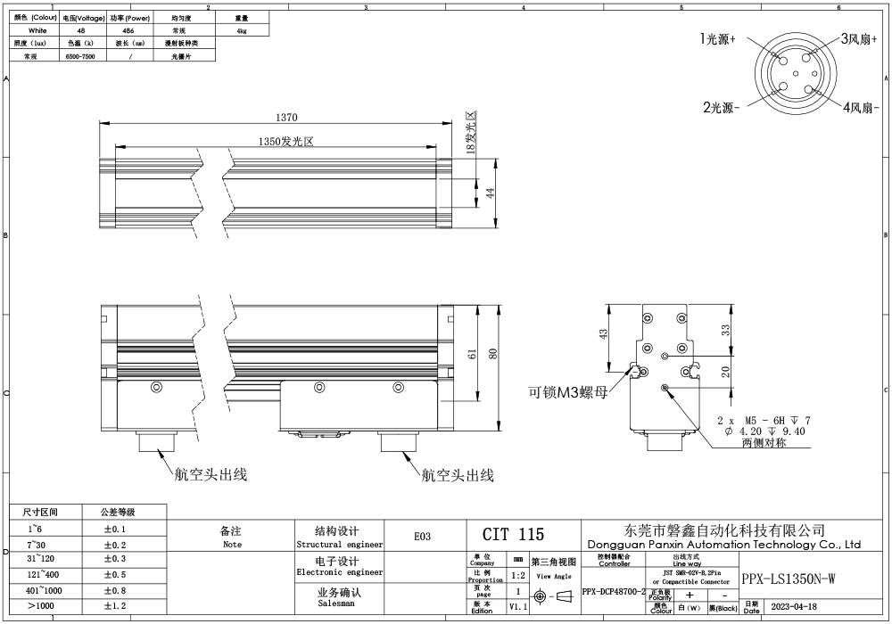 PPX 磐鑫 PPX-LS1350N-W LS线光源 01. 技术指标 02. 选型说明 03. 特殊定制项目 04. 光谱分布 以下皆为实验室数据仅供参考* 手机/微信:18320955412 电话:86 0755 84689265 QQ:2423332841 邮箱:2423332841@qq.com