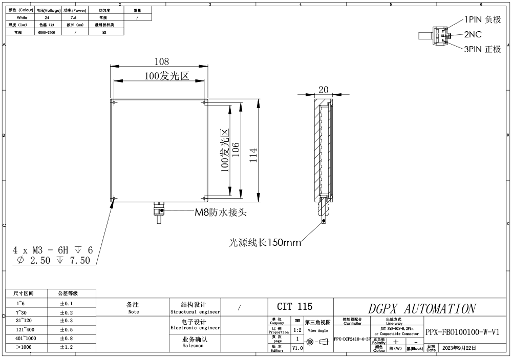 PPX 磐鑫 PPX-FBO100100 防水光源 01. 技术指标 02. 选型说明 03. 特殊定制项目 04. 光谱分布 以下皆为实验室数据仅供参考* 手机/微信:18320955412 电话:86 0755 84689265 QQ:2423332841 邮箱:2423332841@qq.com