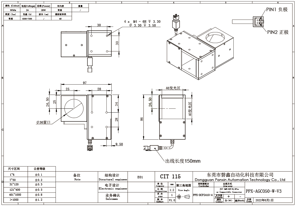 PPX 磐鑫 PPX-AGCO50-W-V3 同轴光源 01. 技术指标 手机/微信:18320955412 电话:86 0755 84689265 QQ:2423332841 邮箱:2423332841@qq.com