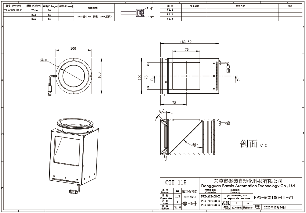 PPX 磐鑫 PPX-AGCO50-W-V1 同轴光源 01. 技术指标 手机/微信:18320955412 电话:86 0755 84689265 QQ:2423332841 邮箱:2423332841@qq.com