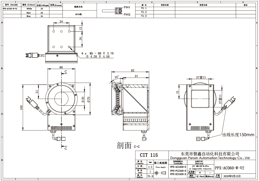 PPX 磐鑫 PPX-ACO60-W-V2 同轴光源 01. 技术指标 手机/微信:18320955412 电话:86 0755 84689265 QQ:2423332841 邮箱:2423332841@qq.com