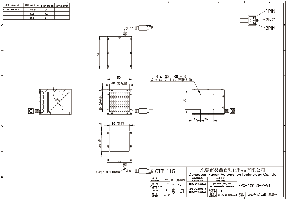 PPX 磐鑫 PPX-ACO50-R-V1 同轴光源 01. 技术指标 手机/微信:18320955412 电话:86 0755 84689265 QQ:2423332841 邮箱:2423332841@qq.com