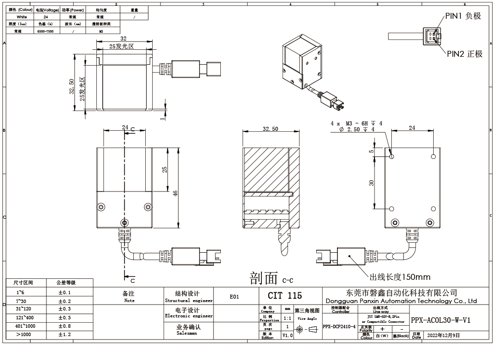 PPX 磐鑫 PPX-ACOL30-W-V1 同轴光源 01. 技术指标 手机/微信:18320955412 电话:86 0755 84689265 QQ:2423332841 邮箱:2423332841@qq.com