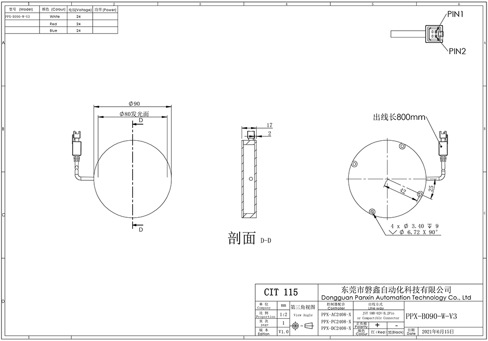 PPX 磐鑫 PPX-BO90-W-V3 底部背光源 01. 技术指标 手机/微信:18320955412 电话:86 0755 84689265 QQ:2423332841 邮箱:2423332841@qq.com