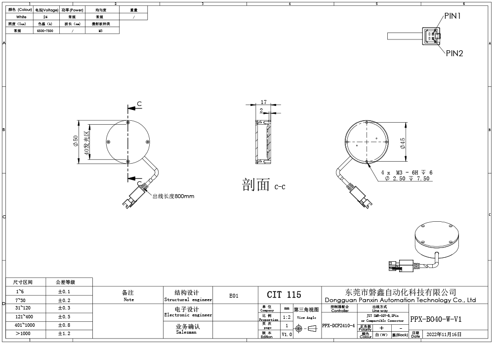 PPX 磐鑫 PPX-BO40-W-V1 底部背光源 01. 技术指标 手机/微信:18320955412 电话:86 0755 84689265 QQ:2423332841 邮箱:2423332841@qq.com