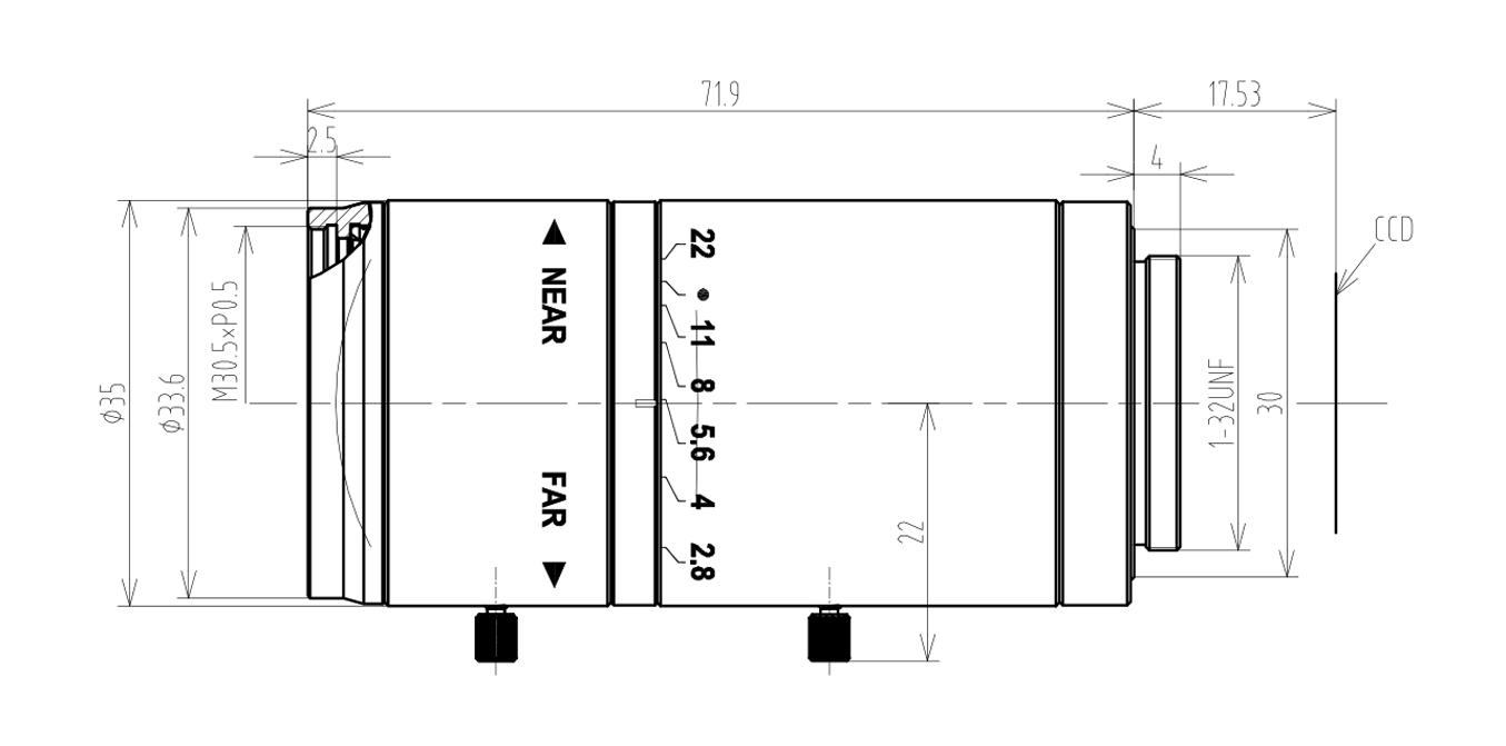 | 1/3"视场角Angle | 3.66°×2.75° | 尺寸 | φ35×71.9 |