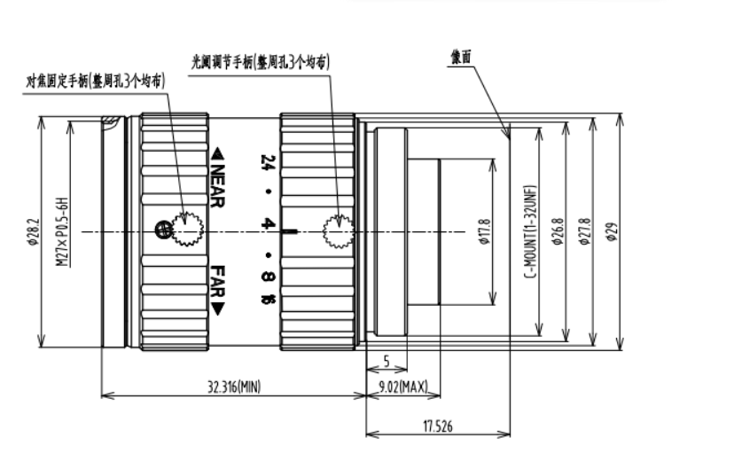 | 滤镜螺纹 | M27×P0.5 | 1/1.7"视场角Angle | 12.86°×9.78° |