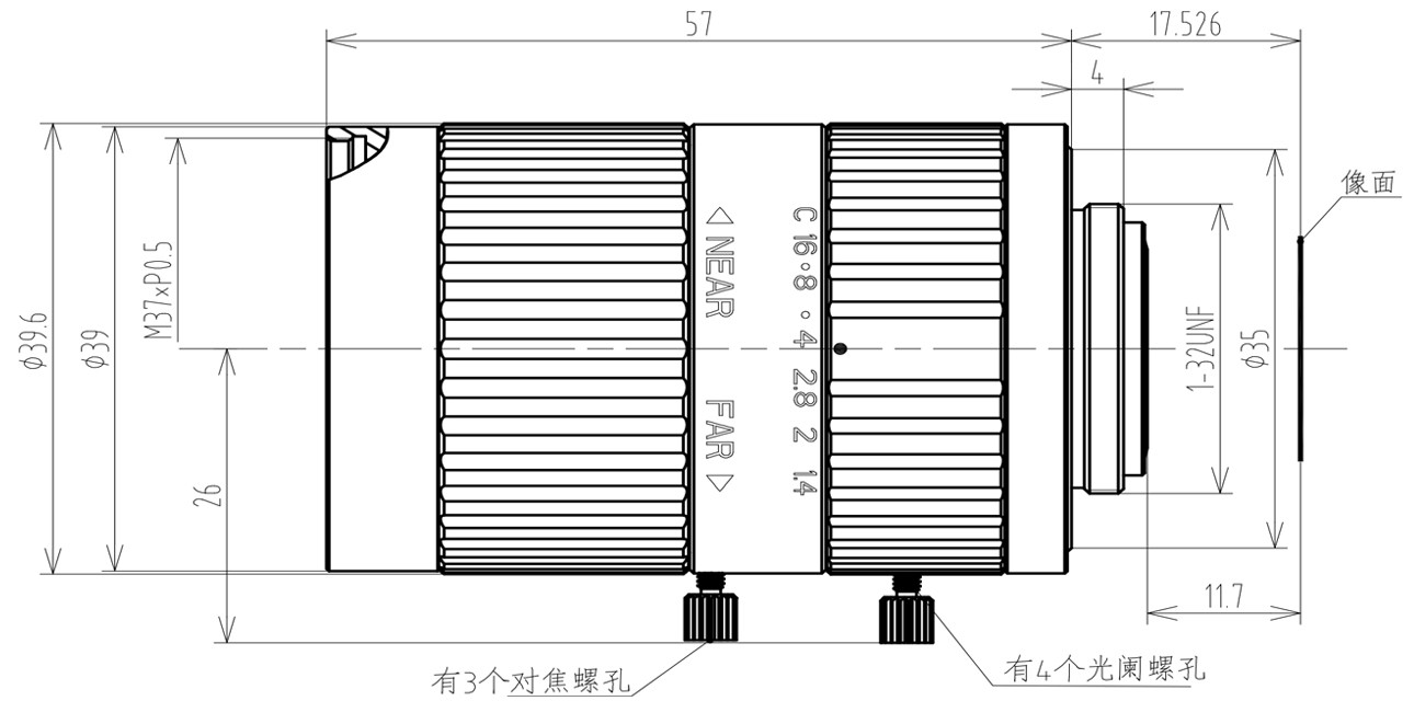 | 最近工作距离MOD | 0.3m、0.177X | 镜头接口 | C-Mount |