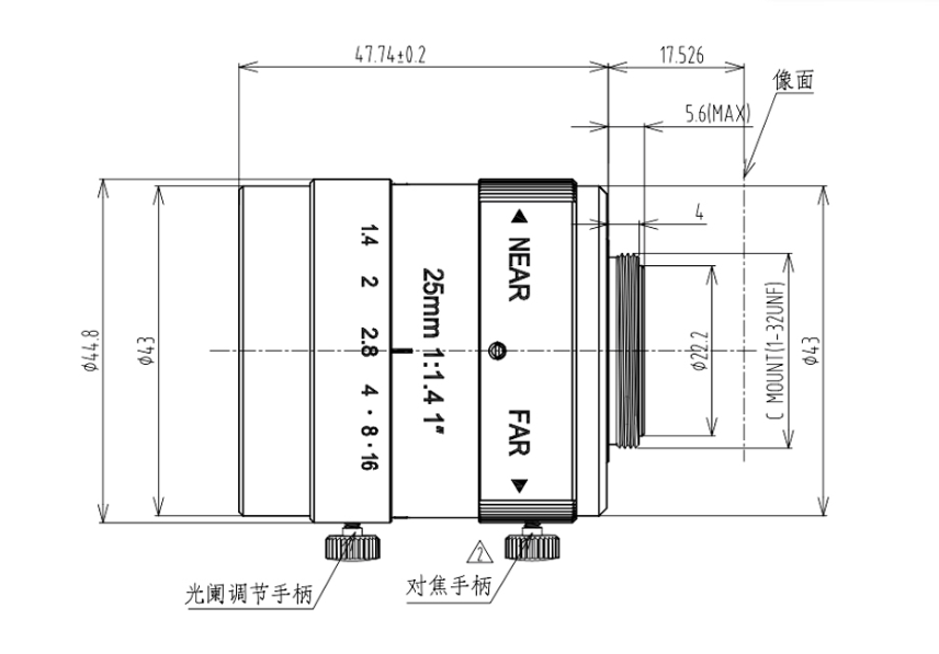 | 最近工作距离MOD | 0.1m、0.27X | 镜头接口 | C-Mount |