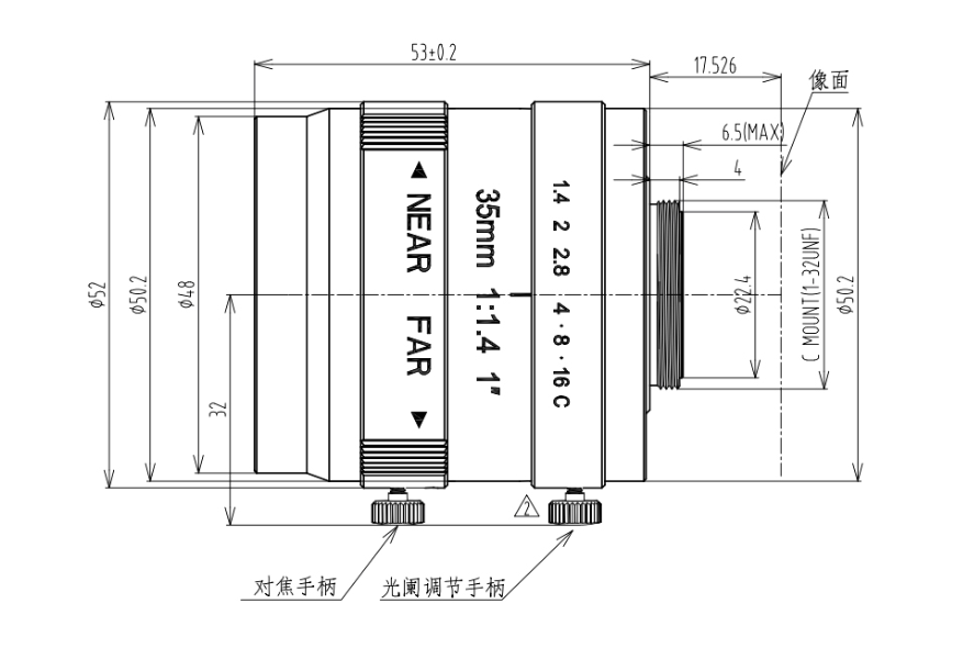 | 镜头接口 | C-Mount | 尺寸 | φ52×53 |