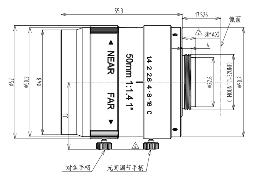 | 最近工作距离MOD | 0.3m、0.163X | 镜头接口 | C-Mount |