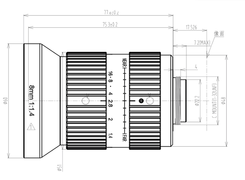 | 最近工作距离MOD | 0.1m、0.064X | 镜头接口 | C-Mount |