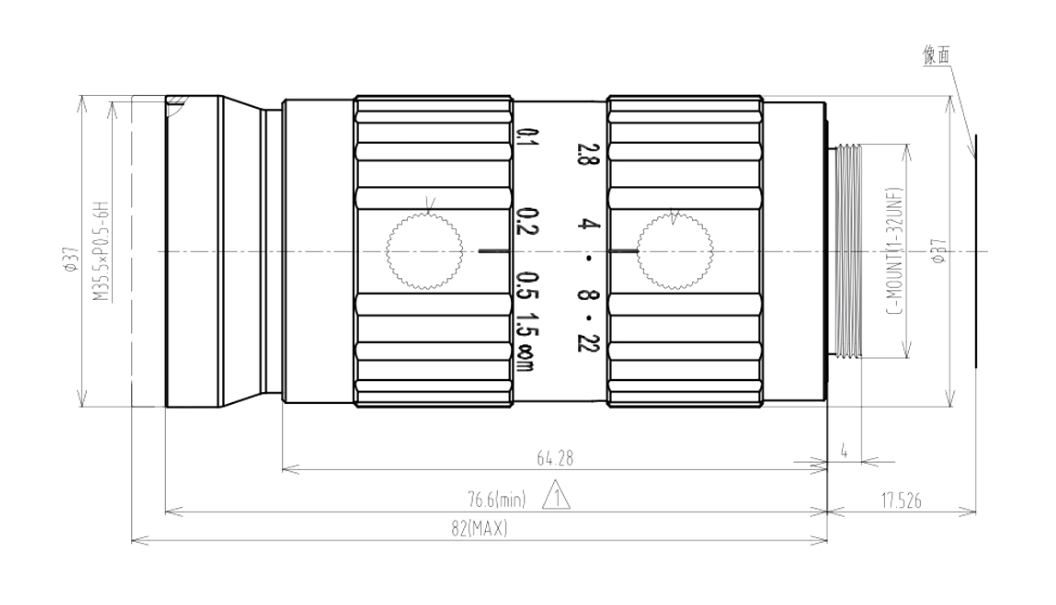 | 最近工作距离MOD | 0.1m、0.221X | 镜头接口 | C-Mount |