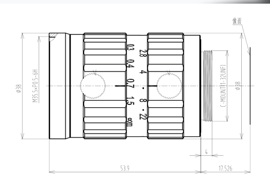 | 最近工作距离MOD | 0.3m、0.179X | 镜头接口 | C-Mount |