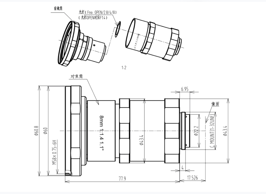 | F.NO | 1.4/2.8/4/8 | TV畸变 | ﹤5.5% |