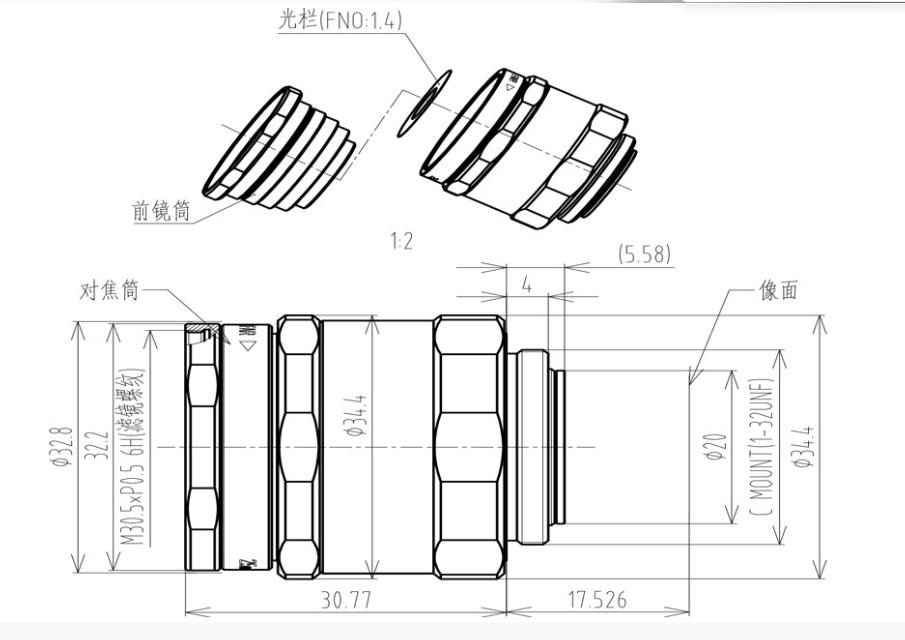 | 滤镜螺纹 | M30.5×P0.5 | 1/2"视场角Angle | 14.6°×11° |