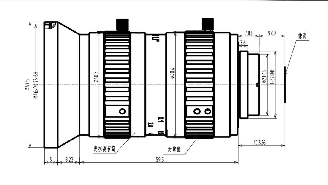 | 最近工作距离MOD | 0.1m、0.1055X | 镜头接口 | C-Mount |