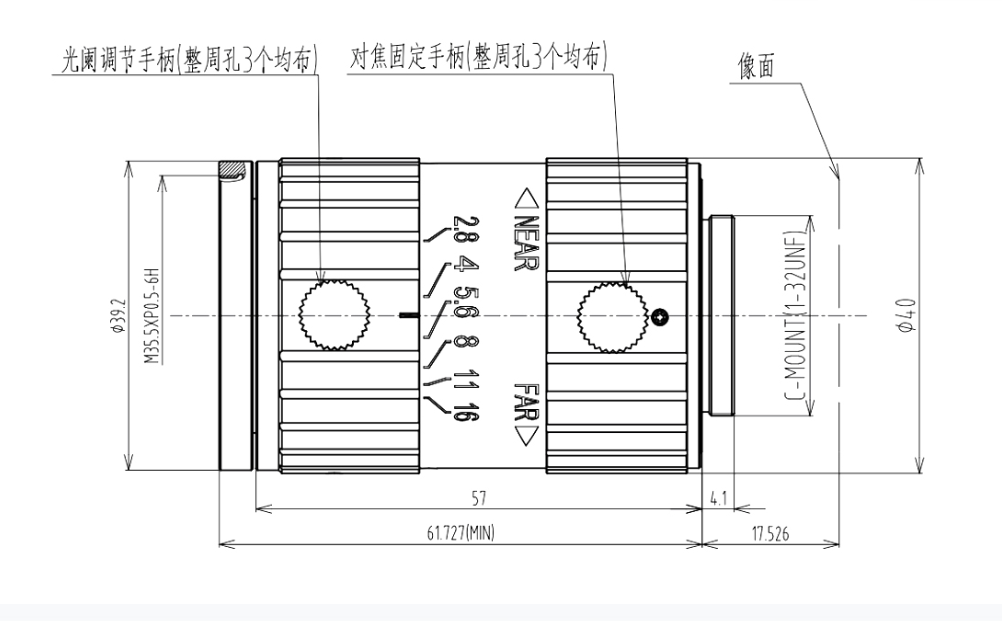 | 最近工作距离MOD | 0.25m、0.2412X | 镜头接口 | C-Mount |