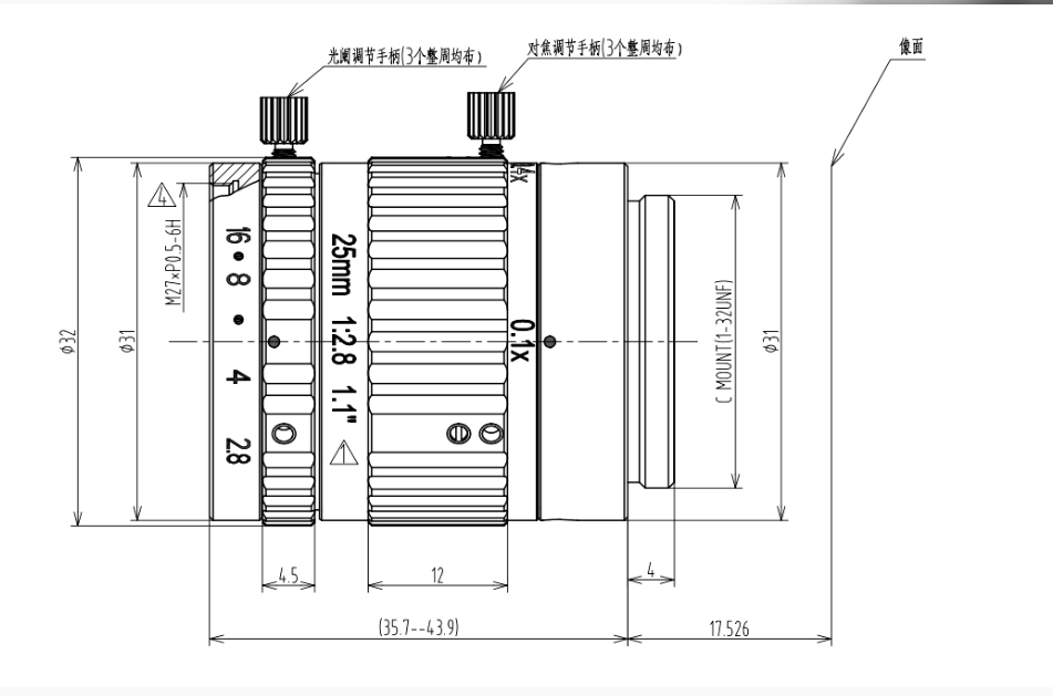 | 滤镜螺纹 | M27×P0.5 | 放大倍率 | -0.4X~-0.1X |