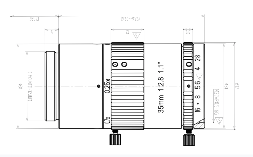 | 滤镜螺纹 | M27×P0.5 | 放大倍率 | -0.7X~-0.25X |
