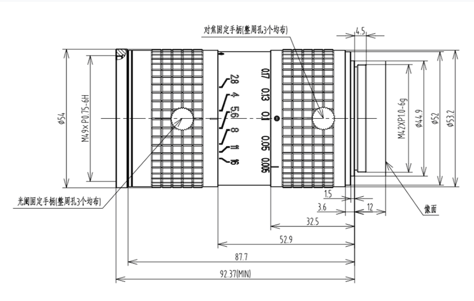 | 滤镜螺纹 | M49×P0.75 | 尺寸 | φ54×92.87(min) |