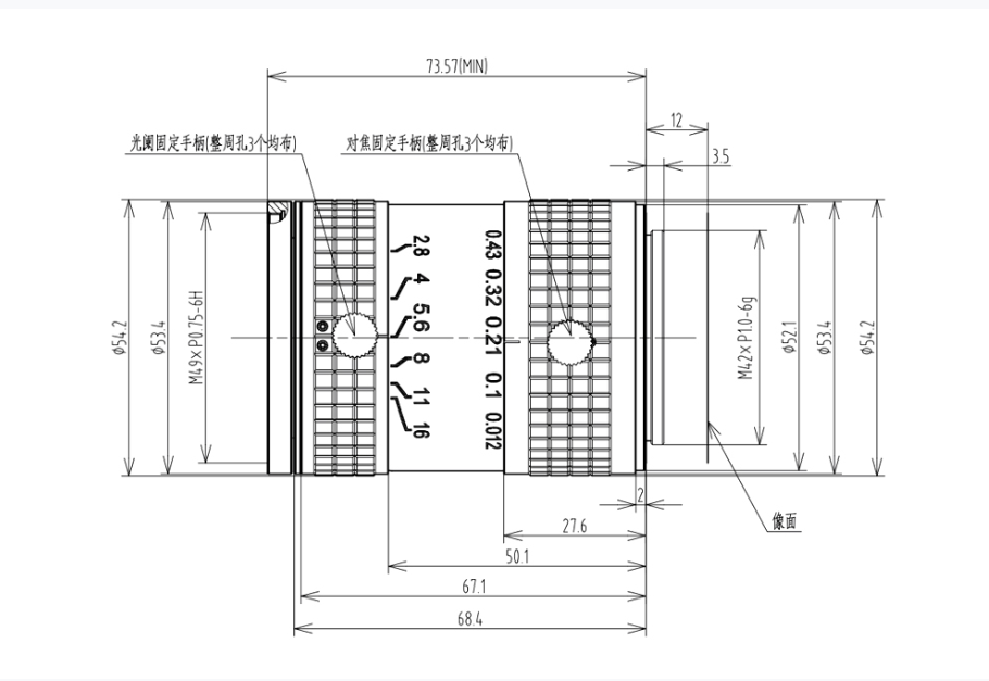| 滤镜螺纹 | M49×P0.75 | 尺寸 | φ54.2×73.57(min) |