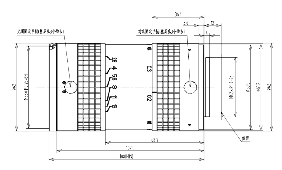 | 滤镜螺纹 | M58×P0.75 | 尺寸 | φ62×108(min) |