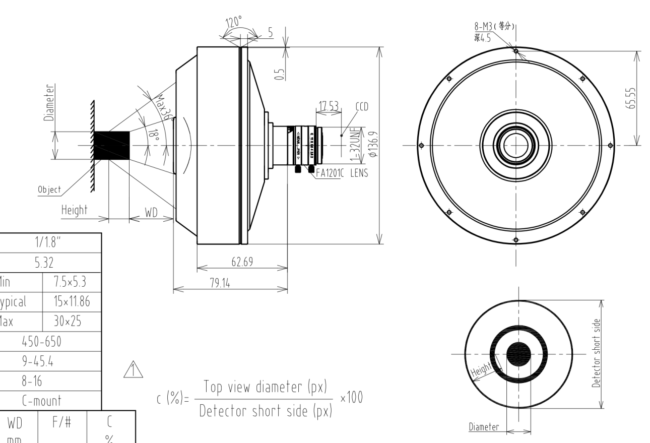 | F.NO | 8.0-16 | 工作距离(mm) | 9-45.4 |