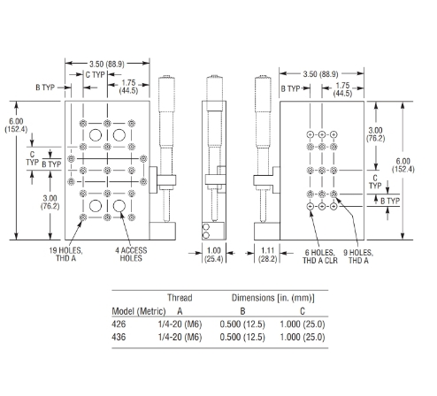 我们的426/436系列位移台很容易堆叠,也可以与我们的 360-90型开槽斜支架结合使用,用于3轴(XYZ)平移。零干扰锁确保每个位移台的行程不相互影响。安装区域在实心平台或直径为 2 英寸孔径的平台上(426A 型和 436A 型)具有一系列 1/4-20 或 M6 的螺纹孔,该孔在 0.625 英寸 (16 mm) 的行程中始终显露在外。该视频演示了如何利用3个426位移台和一个360-90的斜支架来组装3轴(XYZ)手动线性平移系统。(请注意,建议使用左手配置进行垂直平移。)
