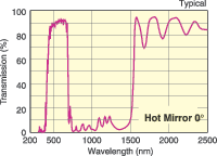 10HMR-0热镜是直径25.4毫米的0°反射镜,用作热控制滤光片。我们的热镜是热反射短通滤光片,旨在透射420-690 nm的可见波长,同时反射725-1550 nm的近红外热产生波长。这些滤光片可用于从光学系统散热。