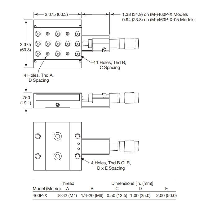 我们已获专利的销钉连接系统使将这些平台连接在一起非常简单。通过将销钉旋入螺纹孔,将平台放置在突出的销钉上以及在平台侧面上拧紧两个固定螺丝,即可完成牢固组装。平台堆叠可以轻松拆卸并重新组装成许多配置。销钉也可以放置在平台上的各个位置,以实现稳定的偏置组件。每个平台都有四个沉头通孔,以提供额外的安装灵活性,并配有两个固定螺钉和四个矮型螺钉。460P系列位移台与我们的460PD系列燕尾台完全兼容。它们具有相同的尺寸,并且可以通过相同的销钉连接系统连接在一起。