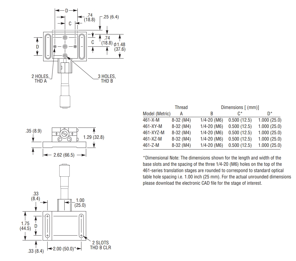 这些位移台有多种配置可满足您的特定要求:X、Z、XY、XZ和XYZ。XYZ位移台提供左手和右手配置之间的选择。此外,可以移除安装基座,以实现更小的外形轮廓。也提供1.0英寸(25.4 mm)行程版本。