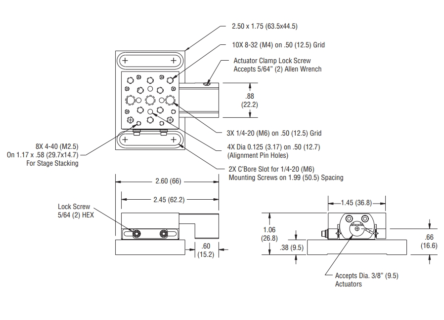 9066-X不锈钢交叉滚子轴承平移台是0.5英寸行程的线性平移台,由于这些不锈钢平台的重量由促动器而不是弹簧支撑,因此具有更高的稳定性。这为在Z轴配置中使用这些X轴配置的平台提供了便利。9066系列平台具有大量的安装孔图案,包括8个4-40,10个8-32和3个1/4-20的螺纹安装孔,不包括促动器。请参阅推荐促动器的说明。