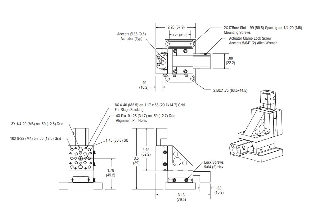 XZ 线性位移台,12.7 mm行程,M2.5,M4 和 M6,真空