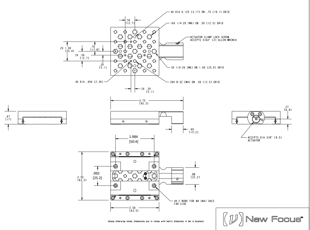 NEWPORT 优铂特 9067-COM-V-M 交叉滚子轴承钢制平台 线性位移台,25.4毫米行程,M4和M6,真空,无底板 9067-COM-V-M商用真空兼容的不锈钢交叉滚子轴承线性平移台是1.0英寸(25毫米)行程的线性平移台,设计用于直接安装到您的系统中。这些平台组装干净,并使用适用于真空和清洁环境的低蒸气压润滑脂。通过取消安装板,该平台的轮廓减小。9067系列平台具有大量的安装孔图案,包括20个M4和21个M6的螺纹安装孔,不包括促动器。我们建议将8302-V真空兼容的picomotor促动器用于真空应用。 参数 位移台类型 Low Profile 位移轴 X 最大位移台行程 25.4 mm 中心负载 222 N 轴向负载 80 N 角度偏差 150 µrad 材料 Stainless Steel 轴承 Crossed-Roller Bearings 螺纹类型 M4 and M6 真空兼容性 10-6 hPa 推荐的压电促动器 8302-V &...